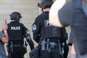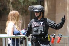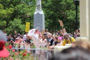At least three people were detained including a minor child.  One person yelled out, “First they let these fascists do this, and now they’re arresting children?  He was just protesting.”  The minor was not arrested, but there was another arrest later on.  Charges are not clear.