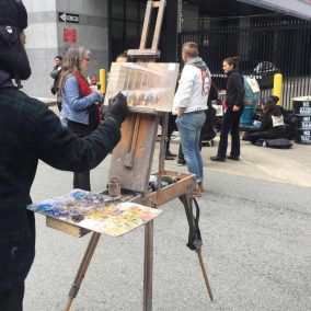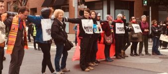Angel pointed to the number of ICE officers who were standing on the street and pointed to the success of the action, “[That ICE officers are here] means they’re not out in the community, arresting our people, violating our rights, using Gestapo tactics against immigrants. Because that’s what they did against my client Jesus. When you were all chanting ‘Shut down ICE’, when you were out here drumming, making sure that this building did not go through business as usual, when 150 people were targeted and arrested and were racially profiled because of their immigration status in this country, you made sure that you were going to disrupt them the way that they disrupt us.”