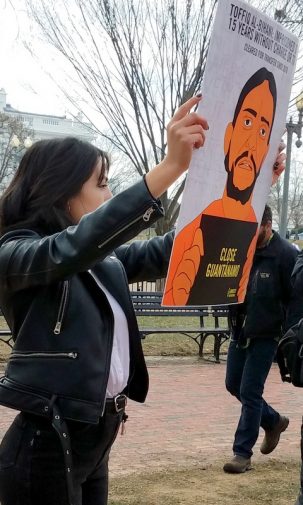 “We’re not just here for the 41 prisoners that remain in Guantanamo, we’re here for the Muslims who might be then taken to Guantanamo, Dr. Maha Hilal of WAT talked to the crowd about historical trauma that those released have and will experience, “We’re here for the Muslim prisoners who have been released whose lives have been devastated and destroyed. And let’s not forget about them because Guantanamo won’t end once the prison is closed. That’s just the beginning of another phase of ending this assault on Muslims, ending institutionalized Islamophobia.”