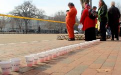 On Pennsylvania Avenue, 41 cups of tea were served to each person who stood in for an individual detainee as each name was read aloud. Each sipped the tea, and then set the cup in a row along the road. Each name was also written on each cup as a representation of one of the few means that some of the forty one have been able to communicate.